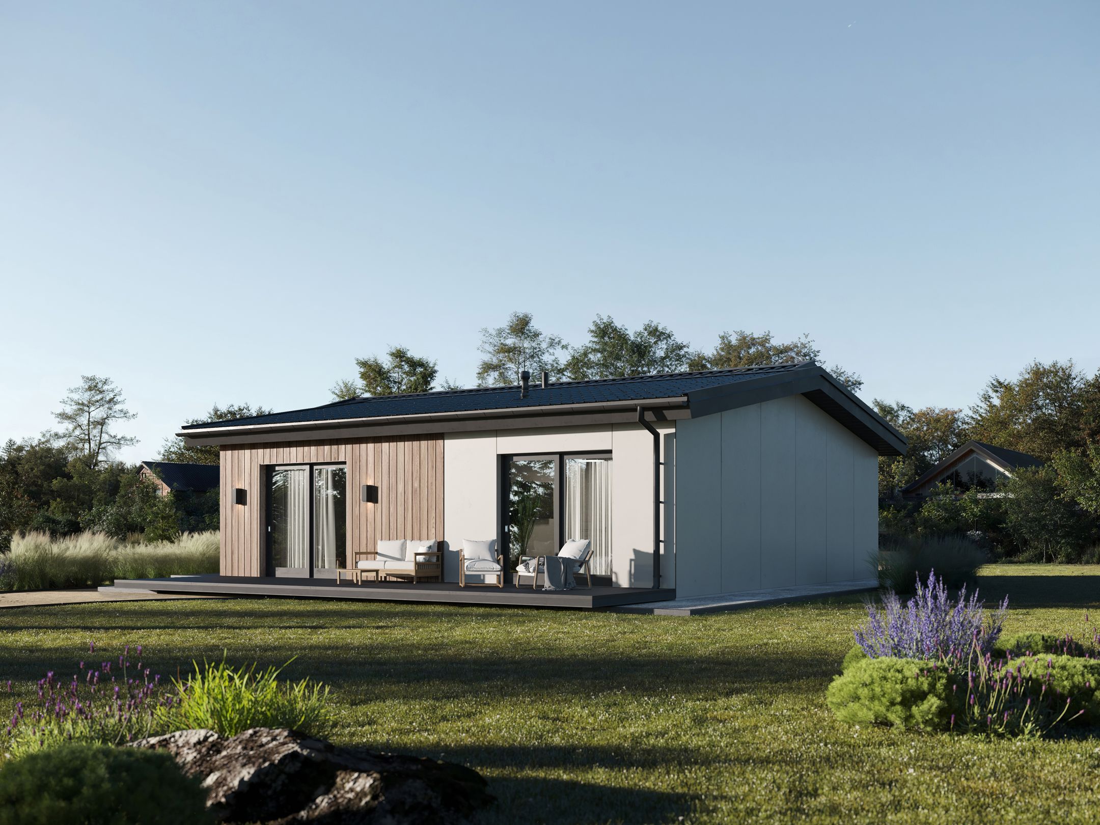 Prefab-технология делает строительство дома быстрым и качественным. Все элементы дома изготавливаются на заводе. Роботизированное производство позволяет производить элементы с высокой степенью точности и качества, что в свою очередь приводит к надежной конструкции.