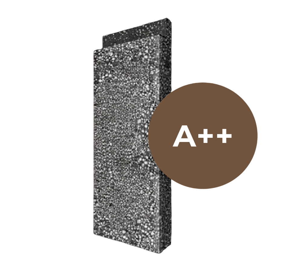 Композитное сверхпрочное изделие общей толщиной 400 мм. Лёгкость конструкции снижает нагрузку на фундамент, а высокие показатели шумоизоляции обеспечивают комфорт. Это позволяет реализовать проекты до 3-х этажей включительно с категорией энергоэффективности А++.